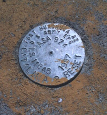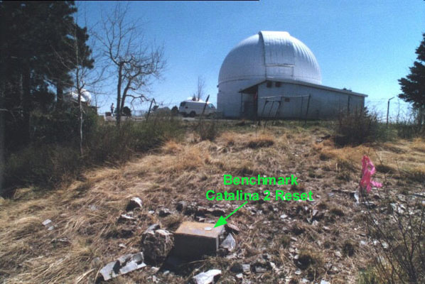 The benchmark on Mt. Lemmon is at the north end just outside the fenced-in area for the observatory. It can be reached by driving down the road from the parking lot to a spot just east of the BM. Park and hike west up the steep slopes .