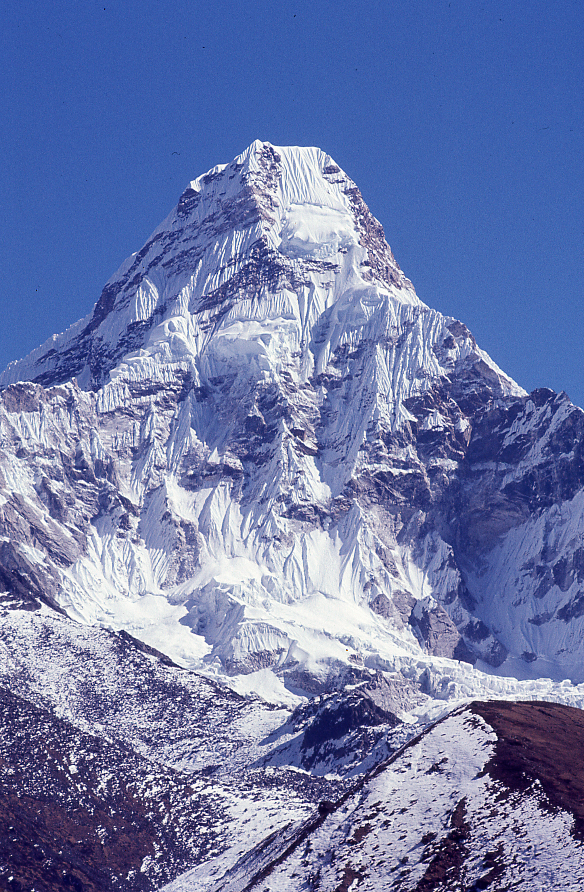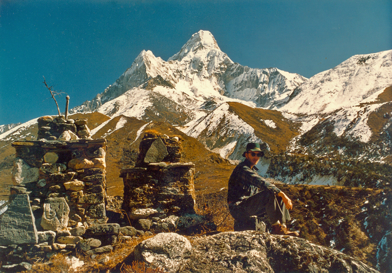 | My first big trek. On the way to Mt. Everest Base Camp on a Mountain Travel trip in November, 1971. That is Ama Dablam, 22,349 feet, in back. A closer photo of Ama Dablam. | ||||||||||||||||||||||||||||||