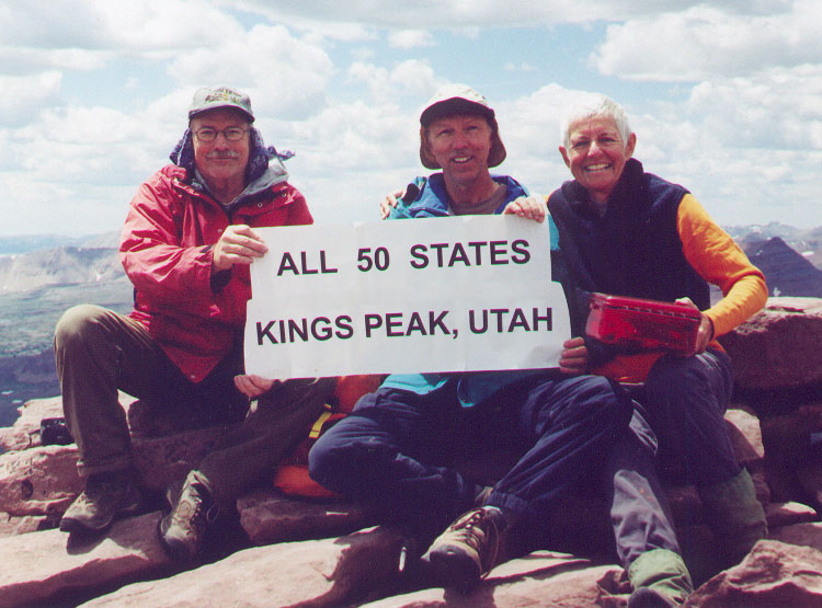 | Terry Flood, Richard Carey and Gail Hanna on Kings Peak, Utah (13,528 ft.) July 25, 2004. |