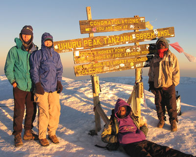 The summit of Kilimanjaro, 19,340 ft. on January 21, 2007. Richard Carey and Shelley Rogers on the left.
