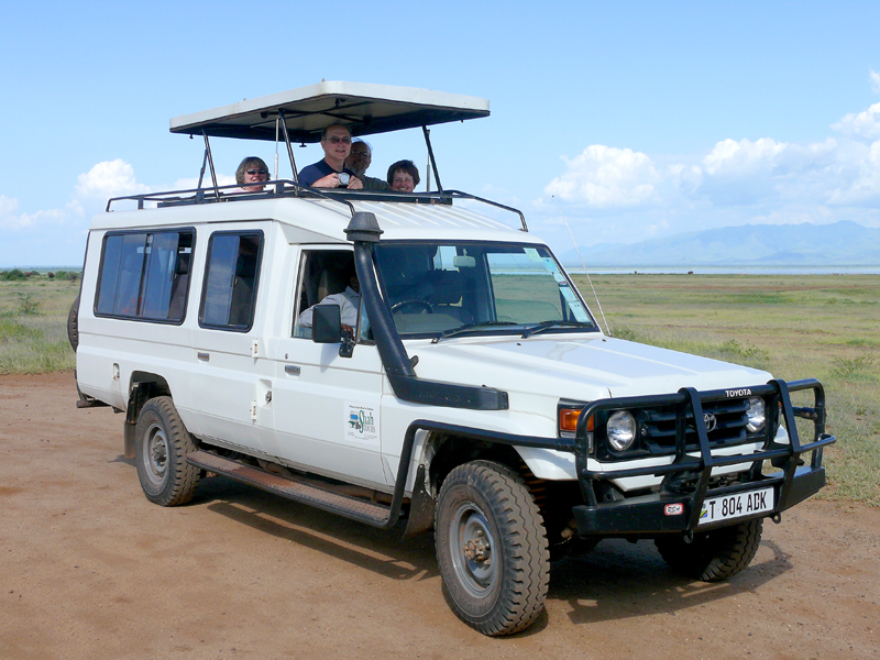 We rode in one of these Toyota safari vehicles. They will seat seven, but it's better with four. It is a very good vehicle. a Diesel with four-wheel drive and a pop-up top for game viewing.