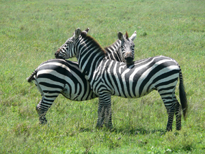 "You look that way and I'll keep an eye out this way!" Plains zebras on the Serengeti.