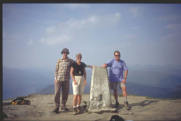 Even though we were going in the warmest months the peaks are quite far north with all of them above 56 degrees, so foul weather was certain to occur. The first week of August was unusually warm and we were sweating profusely on Ben Lomond our first peak and would continue to do so for the next few days until the weather returned to normal cooler conditions. As we moved north toward Torridon in the Northern Highlands we had steady rain and low clouds that made us bypass several peaks. The dreaded midges showed up too. These are nasty little flies much smaller than a mosquito which bite exposed skin. Repellent didn't seem to work too well, but they are poor fliers and disappear in any wind and were bothersome in only a few places.